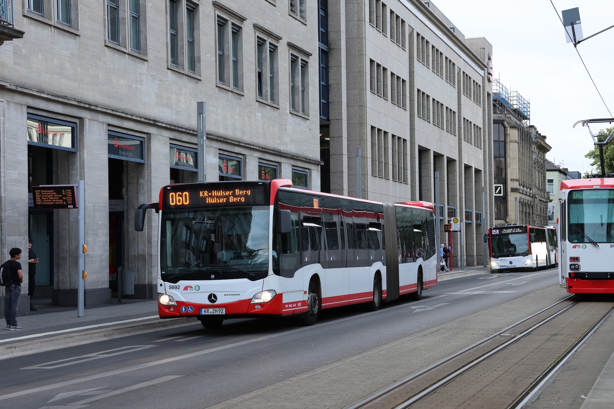 5692 // Rheinstraße, 17.08.2016  5692 // Edelstahlwerk Tor 3, 28.09.2016  5692 // Hauptbahnhof Süd, 09.03.2018  5692 // Sonnenhof, 03.10.2018  5692 // Grotenburg/Zoo, 03.10.2018  5692 // Hauptbahnhof, 02.05.2019  5692 // Rheinstraße, 15.07.2019  5692 // Sollbrüggenstraße, 22.07.2019  5692 // Obergplatz, 24.02.2020  5692 // Rheinstraße, 18.03.2020  5692 // Rheinstraße, 27.12.2023  5692 // Grotenburg/Zoo, 13.08.2024  5692 // Hauptbahnhof Süd, 15.08.2024  5692 // Hauptbahnhof Süd, 15.08.2024  5692 // Hauptbahnhof, 12.05.2025  5692 // Rheinstraße, 23.06.2025  5692 // Rheinstraße, 23.06.2025  5692 // Nordwall, 23.06.2025  5692 // Nordwall, 23.06.2025  5692 // Rheinstraße, 01.07.2025  5692 // Bockumer Platz, 08.07.2025  5692 // Lange Straße, 08.10.2025