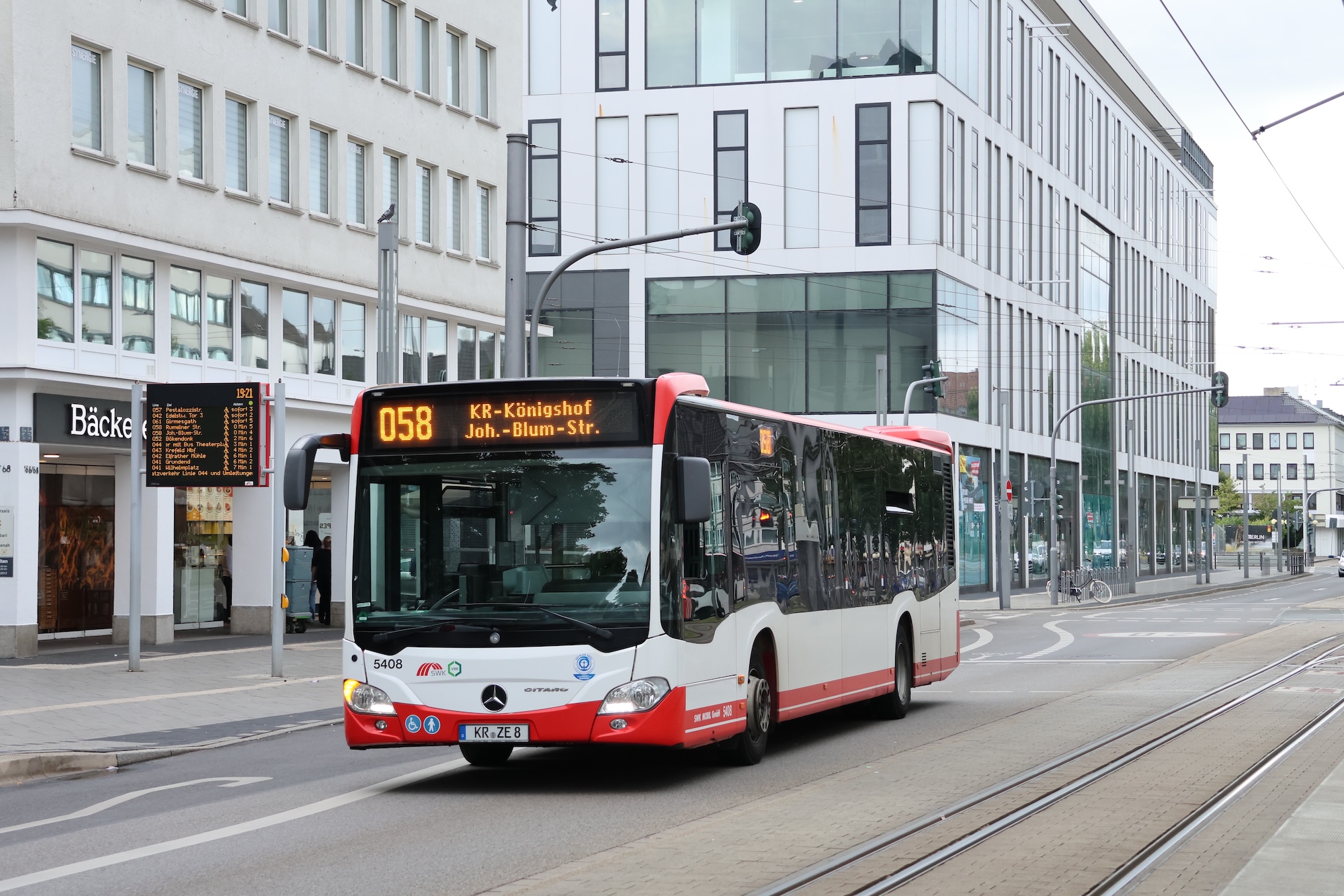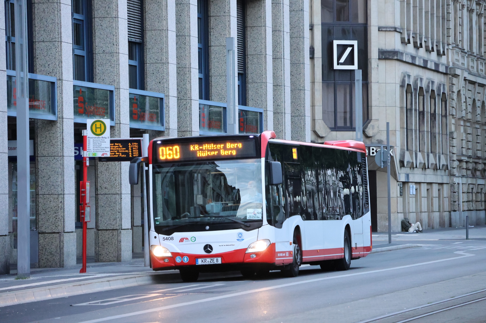 5408 // Hüls Betriebshof, 08.08.2015  5408 // Bockumer Platz, 31.01.2016  5408 // Bockumer Platz, 03.04.2016  5408 // Bockumer Platz, 02.08.2016  5408 // Von-Ketteler Straße, 28.09.2016  5408 // Hauptbahnhof, 12.04.2017  5408 // Hauptbahnhof, 07.07.2017  5408 // Bergstraße, 08.07.2018  5408 // Rheinstraße, 11.01.2019  5408 // Verberger Straße, 31.08.2019  5408 // Nordwall, 06.09.2019  5408 // Alexanderplatz, 30.04.2023  5408 // Stadtpark Fischeln, 31.05.2023  5408 // Bockumer Platz, 16.06.2023  5408 // Rheinstraße, 27.12.2023  5408 // Hauptbahnhof, 06.06.2025  5408 // Hauptbahnhof, 13.06.2025  5408 // Rheinstraße, 23.06.2025  5408 // Rheinstraße, 01.07.2025  5408 // Rheinstraße, 01.07.2025  5408 // Rheinstraße, 08.07.2025  5408 // Rheinstraße, 08.07.2025